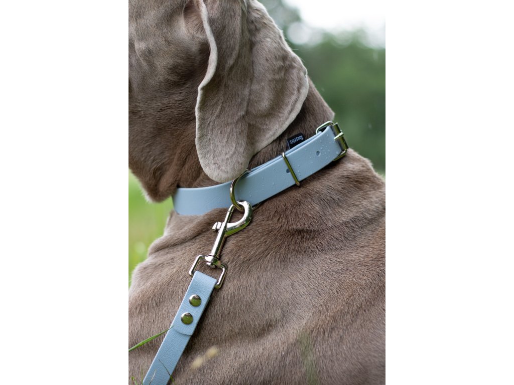 Chcete, aby váš pes byl sladěn od hlavy až k ocásku? Žádný problém! K obojku si můžete dokoupit vodítko nebo postroj ve stejné holubí modři a vytvořit tak kompletní set, který z vás a vašeho psa udělá hvězdy každé procházky.