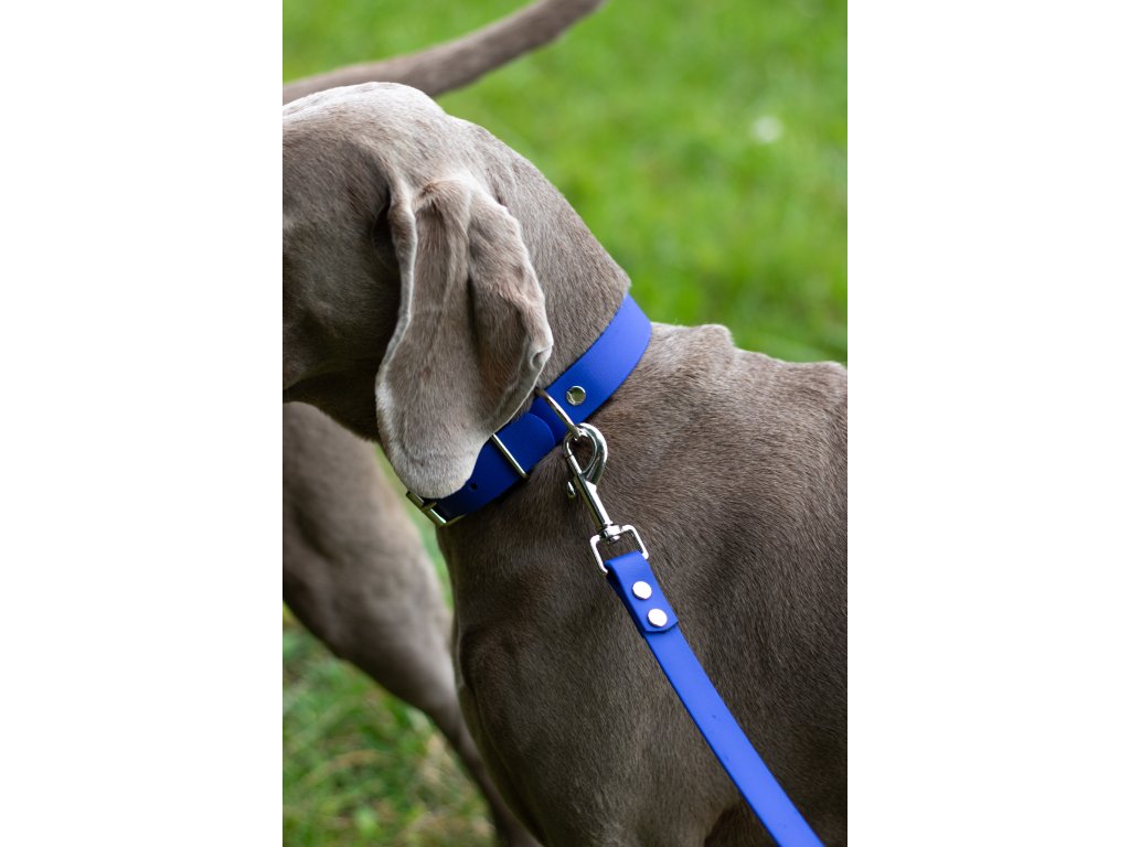 Chcete, aby váš pes byl sladěn od hlavy až k ocásku? Žádný problém! K obojku si můžete dokoupit vodítko nebo postroj ve stejné královské modři a vytvořit tak kompletní set, který z vás a vašeho psa udělá hvězdy každé procházky.