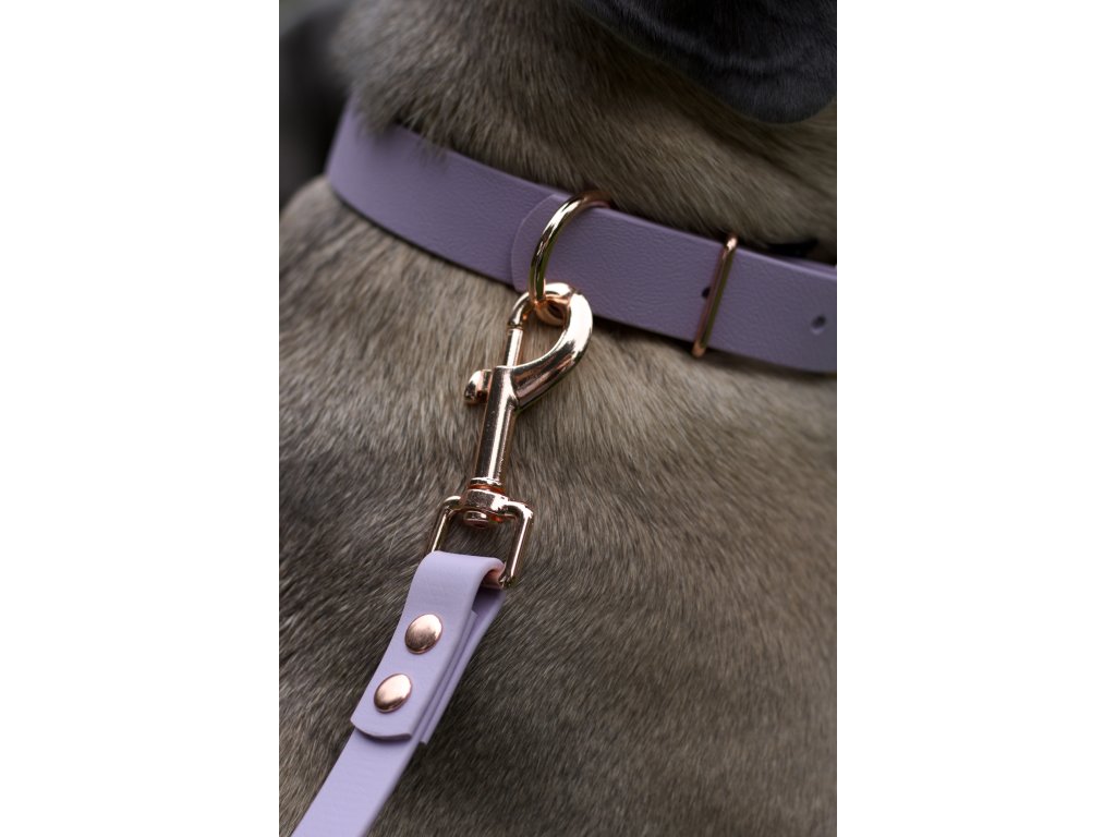 Světle fialový popruh v kombinaci s kovovými částmi v barvě růžového zlata je prostě neodolatelný. Je to jako mít na svém psovi malý kousek nebe. A pokud chcete dotáhnout styl k dokonalosti, můžete si dokoupit vodítko či postroj ve stejné barvě!
