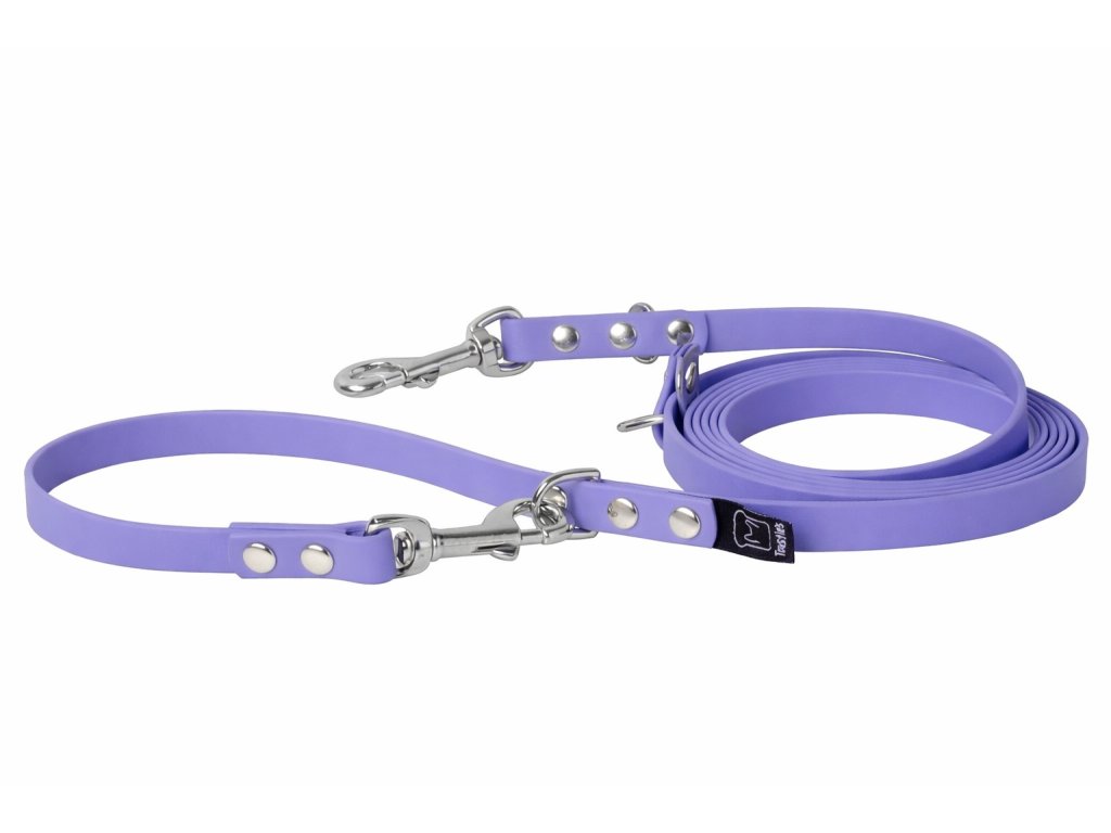 Ručně vyráběné přepínací vodítko z originálního Biothane® s pevnými kovovými karabinami. Nastavitelná délka, voděodolný materiál a spolehlivost pro každý den.