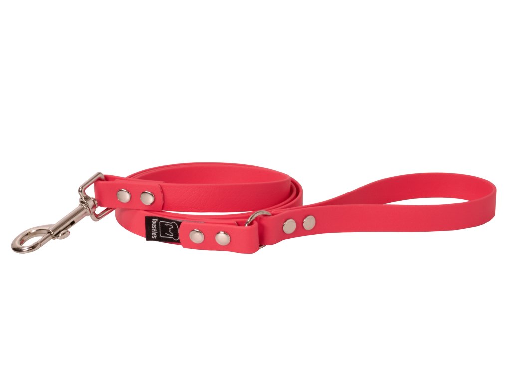Vodítka vyrábíme z BioThane® odpuzující vodu, bakterie a odolného vůči odírání a vytahování. Oblíbili jsme si ho i díky velmi snadné údržbě, kdy ho stačí pouze otřít vlhkým hadříkem.
