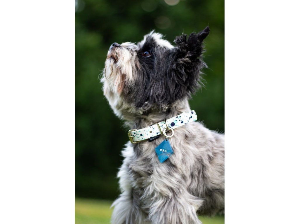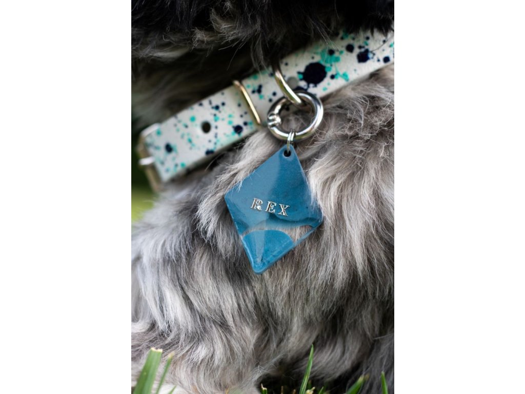 Dopřejte svému psovi výjimečný doplněk, který vyniká luxusem a originalitou. Každá známka je pečlivě ručně vyrobena, takže žádné dvě nejsou stejné. Kombinace modré a průhledné barvy podtrhuje jedinečnost a eleganci, kterou si váš čtyřnohý parťák zaslouží. Zapomeňte na obyčejné známky – sáhněte po šperku, který zdůrazní osobitost vašeho psa a dodá mu styl i bezpečí.